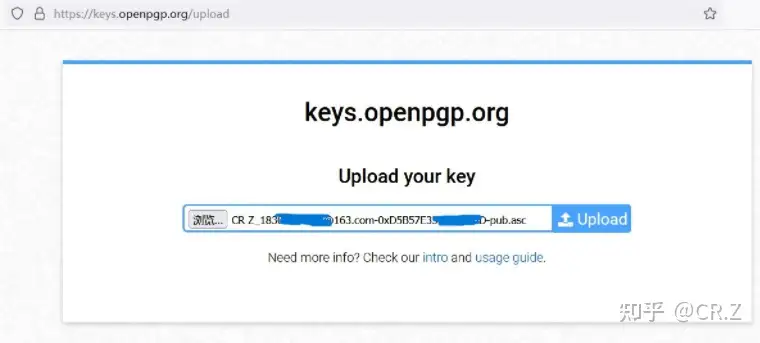 访问 https://keys.openpgp.org/upload ,上传刚刚导出的公钥(文件名里带pub的)