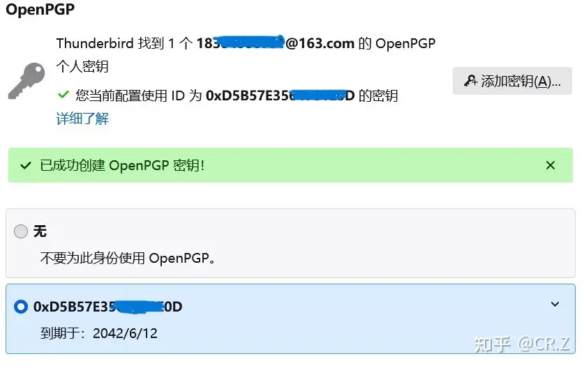 网上一些年代比较久远的教程还涉及PGPDesktop、Enigmail插件等,而Thunderbird早已原生自带了一个简洁易用的OpenPGP密钥管理器,不必另行安装,方便很多。